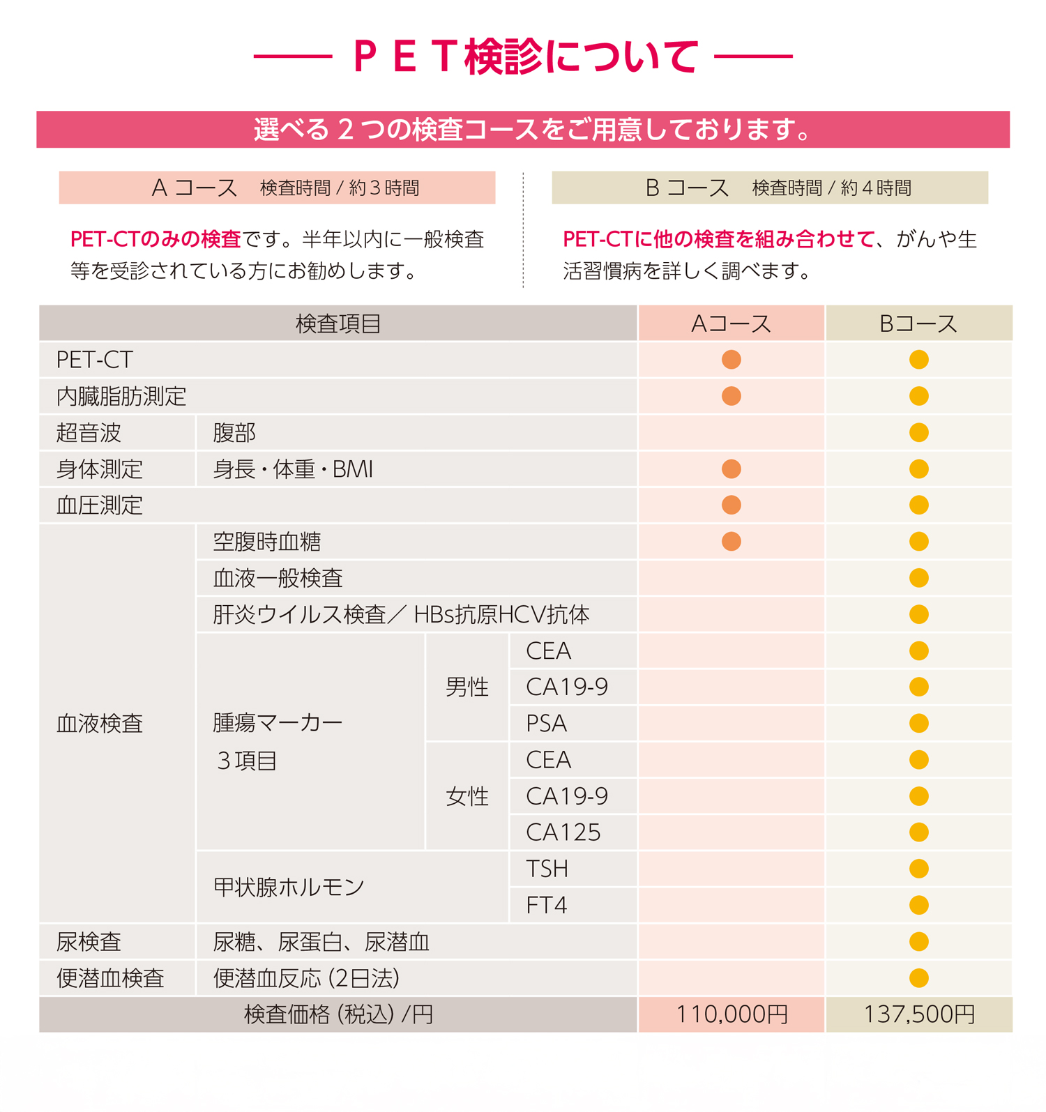 - PET検査は成長の早いがん細胞がブドウ糖を多く消費する性質を利用して、がんの有無を診断する検査ですが、
