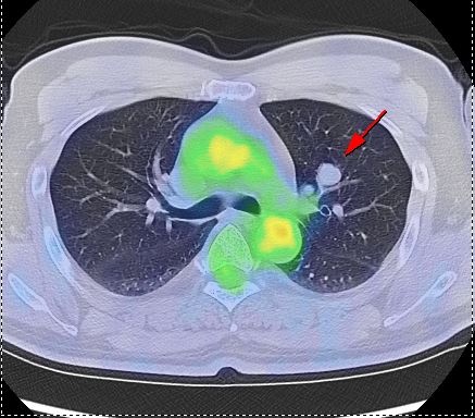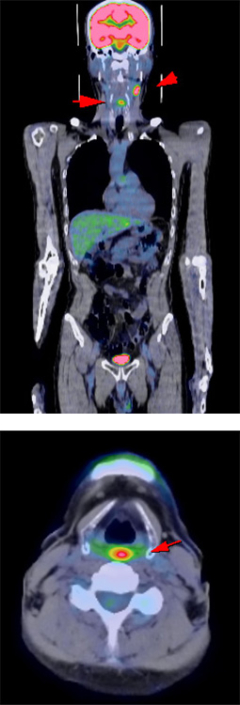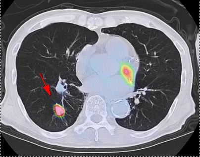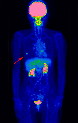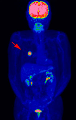 細胞の活動状態をみることが得意なPET検査では、ブドウ糖を多く取り込むかどうかで、良性、悪性の鑑別を推測することができます。
